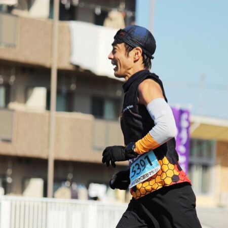 レース中はフラスクに事前に入れておいたスーパーエナジーを8キロ、15キロ、25キロ、35キロで補給するだけで脚が攣ることもなく、最後まで楽しく走ることができました。