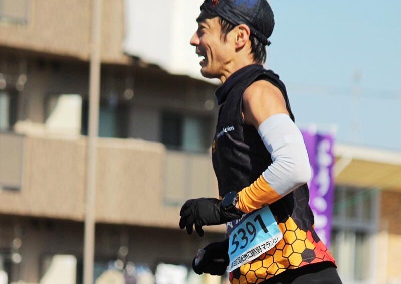 レース中はフラスクに事前に入れておいたスーパーエナジーを8キロ、15キロ、25キロ、35キロで補給するだけで脚が攣ることもなく、最後まで楽しく走ることができました。
